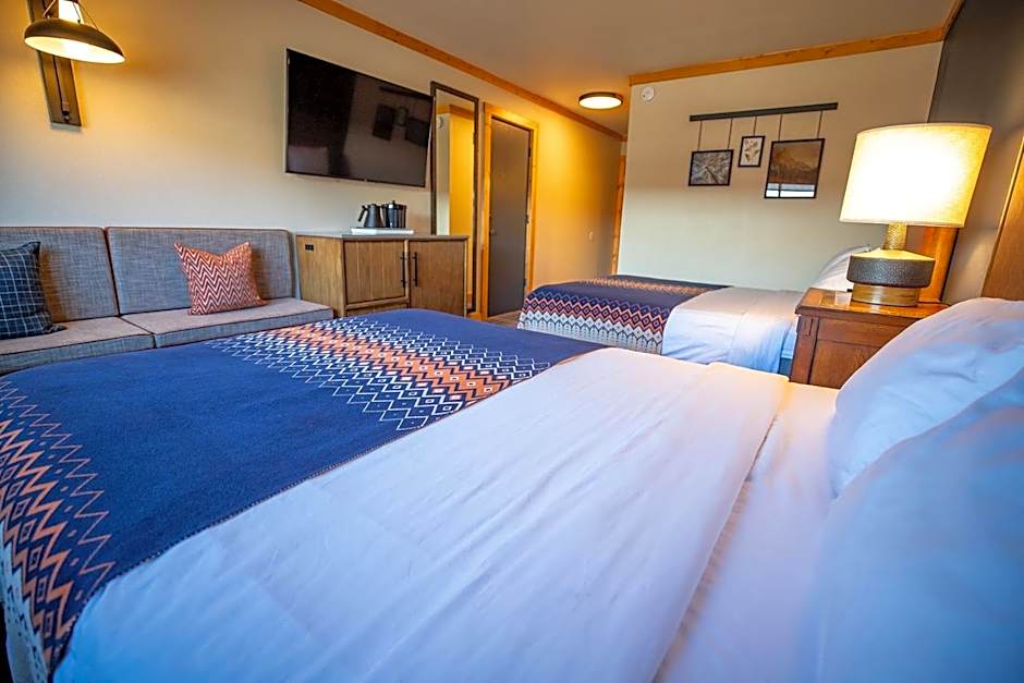 Our rustic resort offers a choice between two different types of newly remodeled deluxe rooms - Deluxe King or Deluxe Queen. For further options, a limited number of Deluxe Queen hotel rooms can be connected to one of the Fireplace Suites.